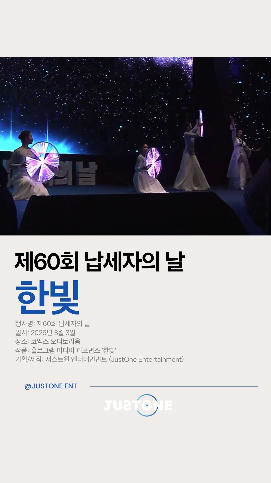 저스트원 엔터테인먼트는 움직임을 기반으로 문화와 소통하며, 예술의 향유를 활용하여